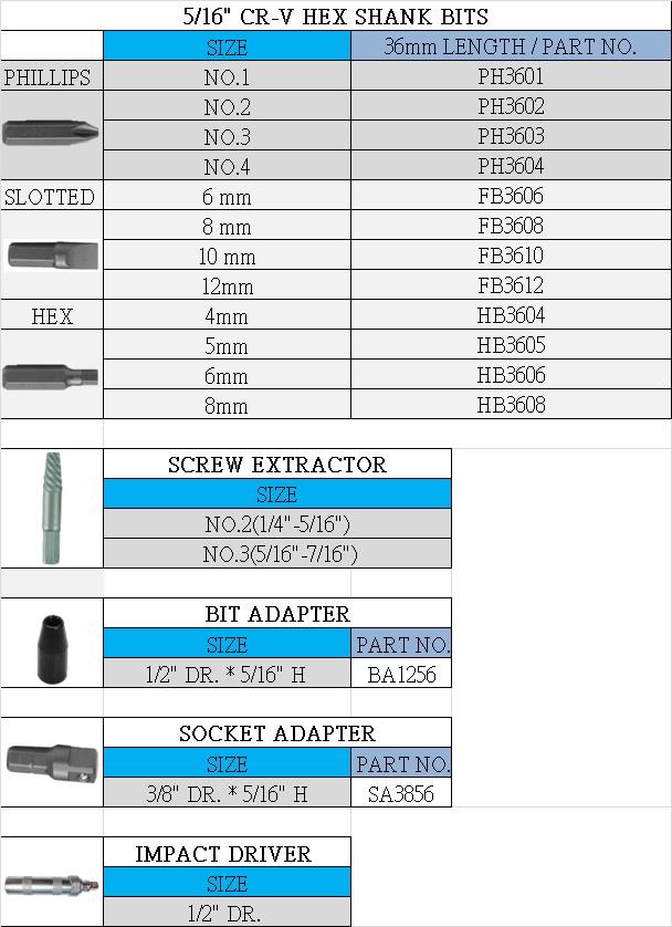 1 – Bit Holder, 1/2" DR. * 5/16" Hex