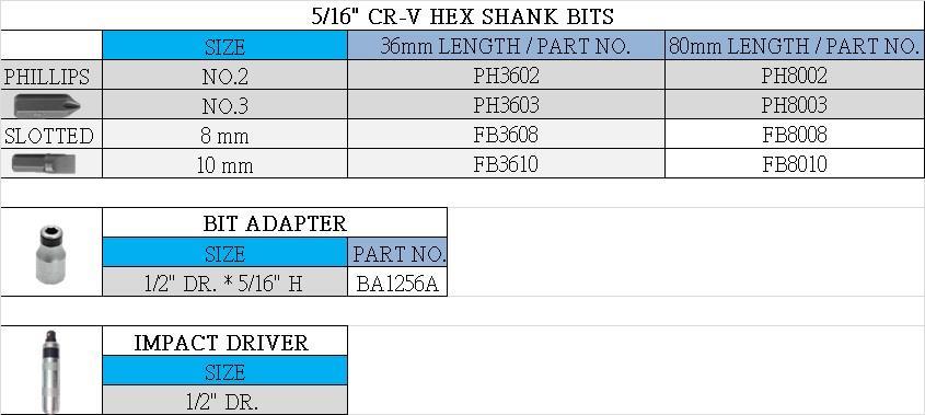 4-Impact Driver Bit, 5/16" Hex * 36mm
