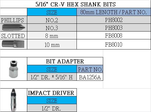 4 – 5/16" H * 80mm Impact Driver Bit