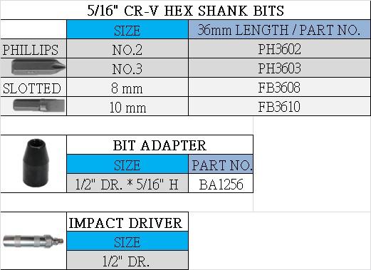 1 – 1/2" DR. * 5/16" H Bit Holder