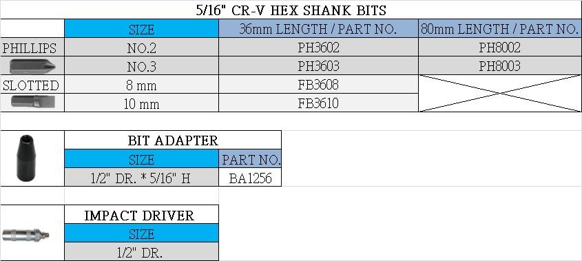 1 – 1/2" DR. * 5/16" H Bit Holder