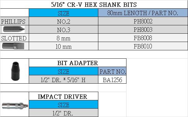 4 – 5/16" H * 80mm Impact Driver Bit