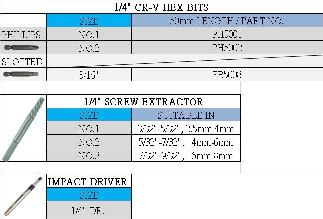 4. Exchangeable bits Cr-v or S2 Bit & specs optional.
