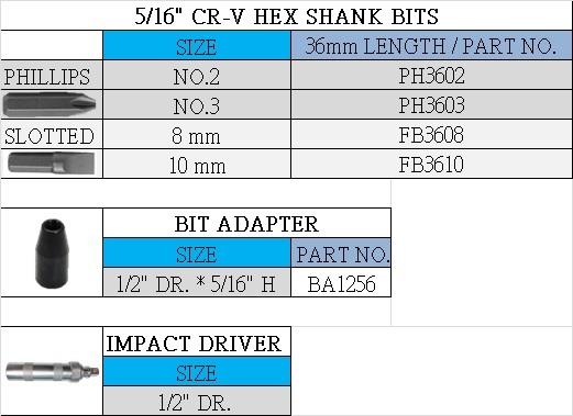 1 – 1/2" DR. * 5/16" H Bit Holder