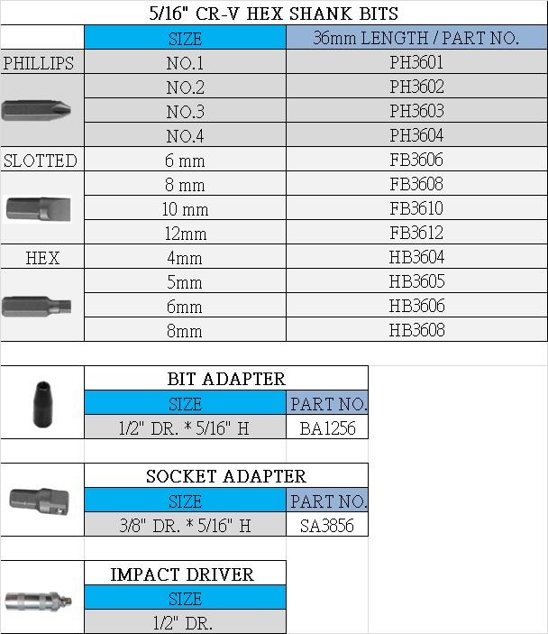 1 – 1/2" DR. * 5/16" H Bit Holder