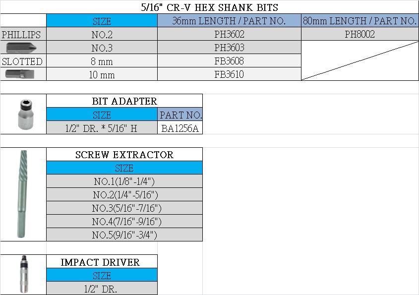 4 – 5/16" H * 36mm Impact Bit
