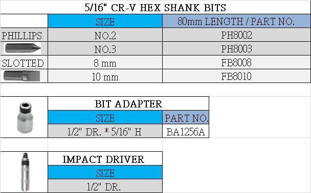 1 – 1/2" DR. * 5/16" H Bit Holder