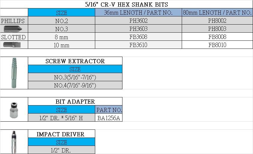 1 – 1/2" DR. * 5/16" H Bit Holder