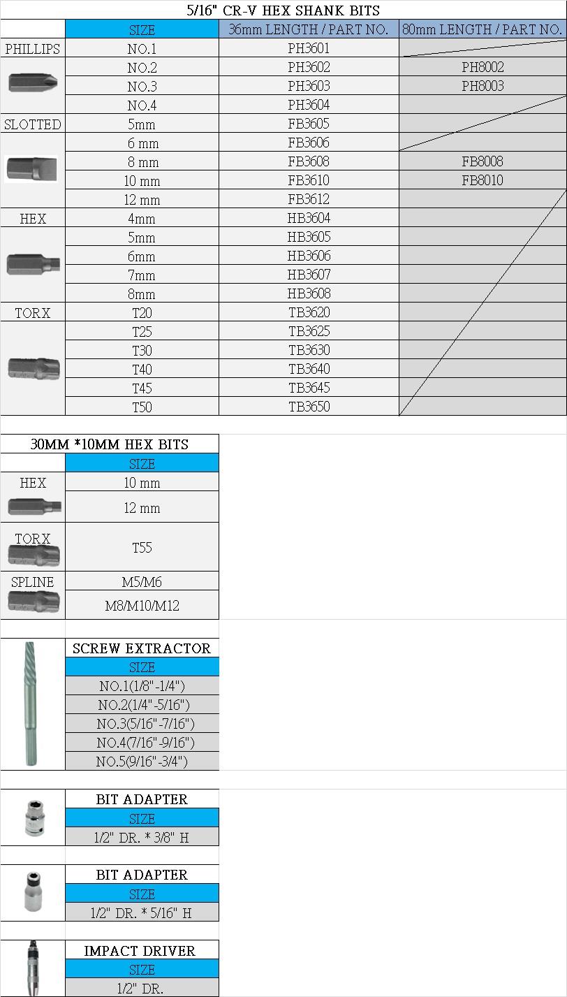1 – 1/2" DR. * 5/16" H Bit Holder